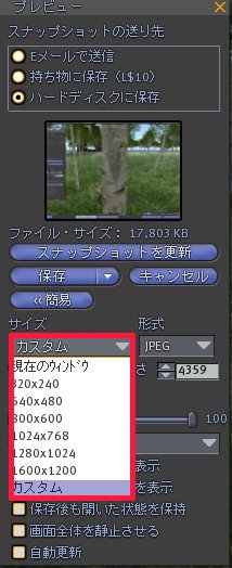 セカンドライフで現在(2009/09/30)撮影可能なサイズは、カスタムの設定で6016×4359です。