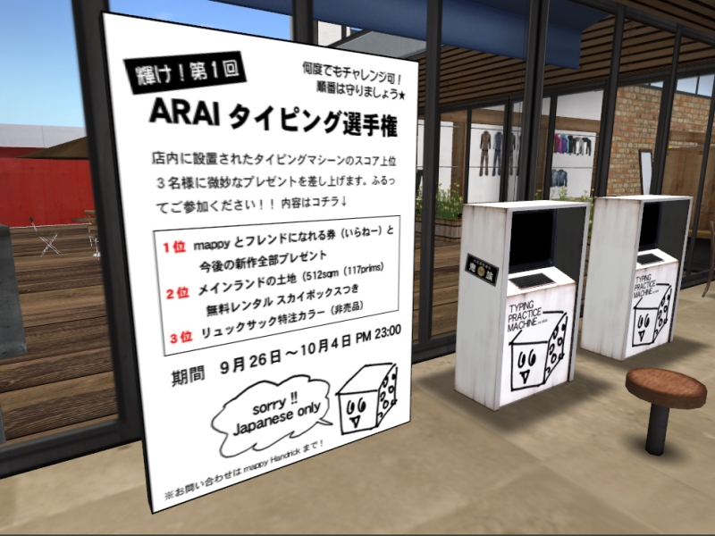 10/4 23:00まで*ARAI*Main Shopでタイピング選手権開催中です☆