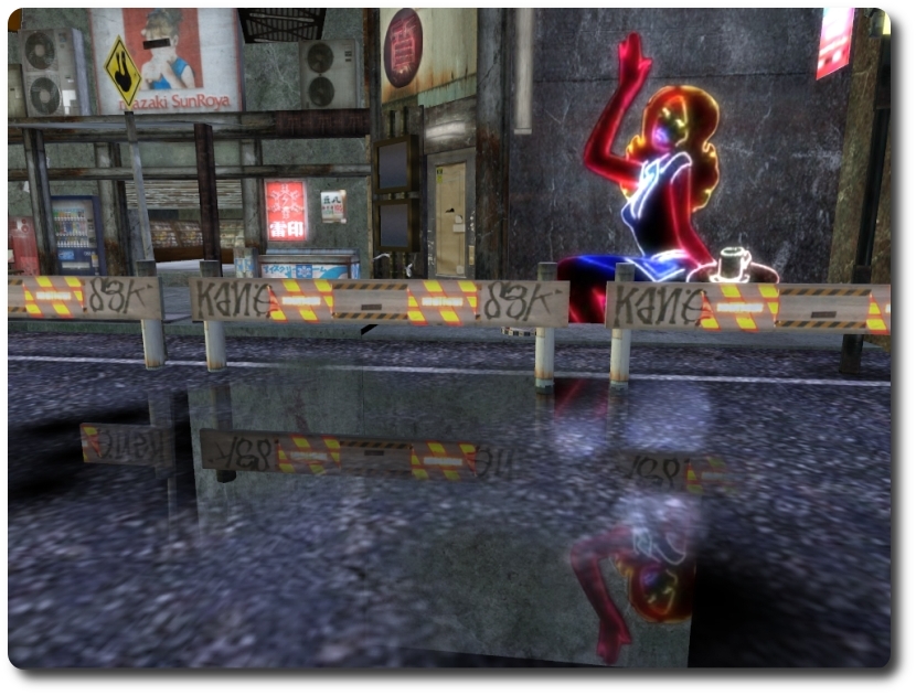 今のところセカンドライフでは、水面に景色が映りこんだり、物体やアバターの影が映りこんだりという表現は一部可能ですが、水溜りに景色を映しこむことはできません。