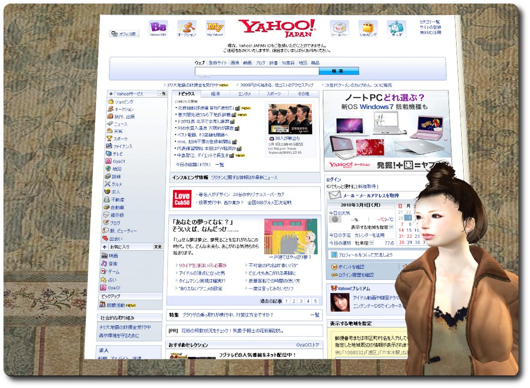 試しにYahooサイトをテクスチャに張り付けてみたところ、検索もメールチェックもインワールド内でできました。
