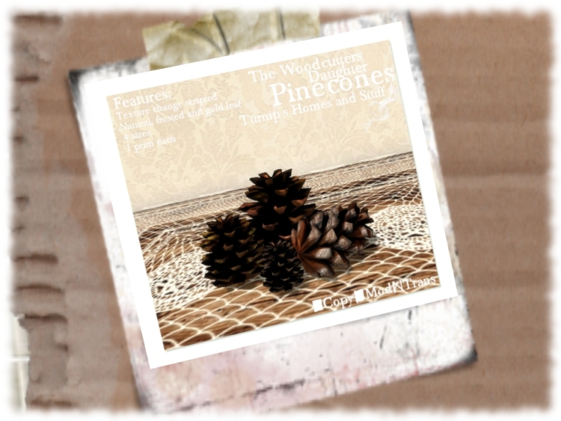 この松ぼっくり、1プリムであるのみならず、クリックするとダイアログで柄が豊富に選べます